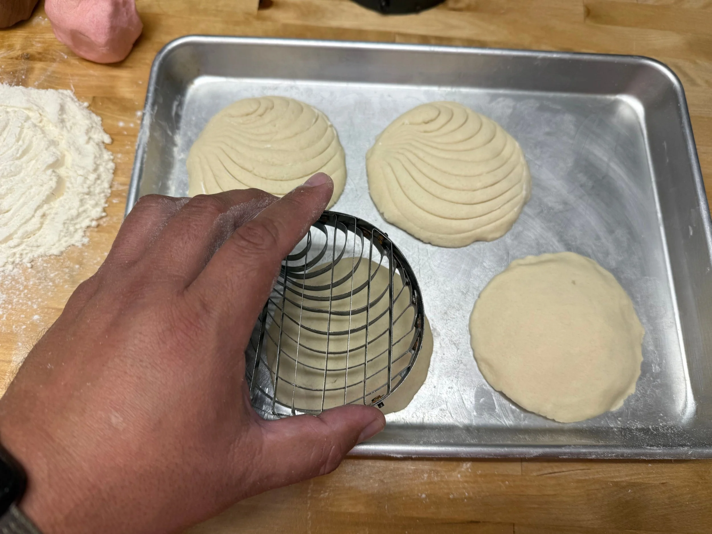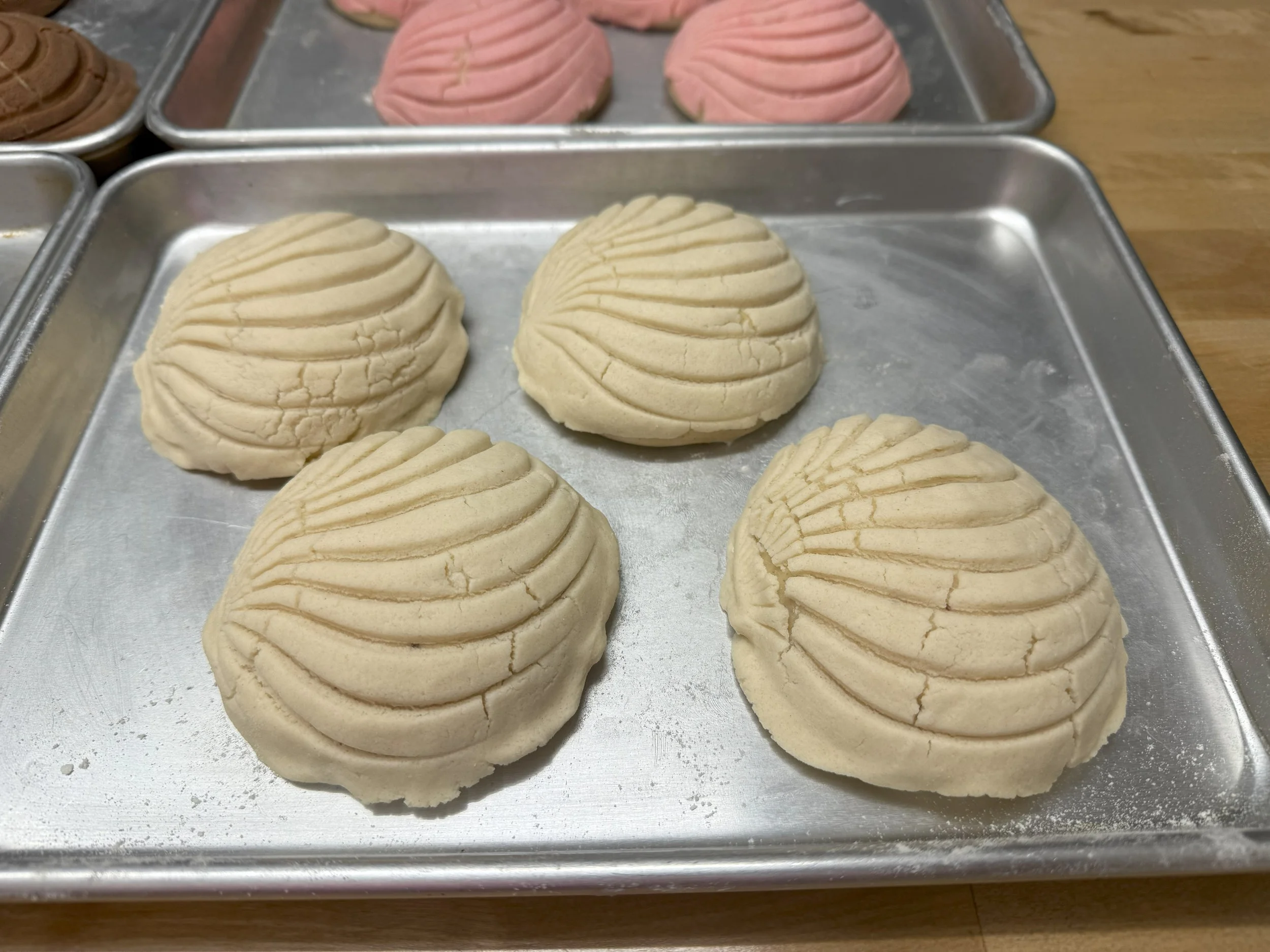 There are some best practices to consider when making these iconic pastries at home. Spacing is critical to the texture of the finished product. Placing too many dough pieces on a baking sheet can cause the conchas near the edges to dry out, while those in the center need a longer baking time. A two-inch (5-centimeter) distance between each 55-gram (2-ounce) dough piece is ideal for an even and consistent bake.